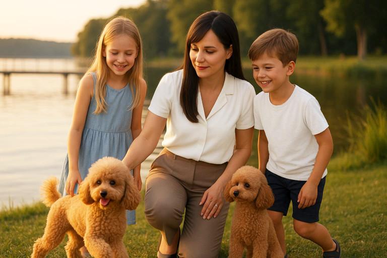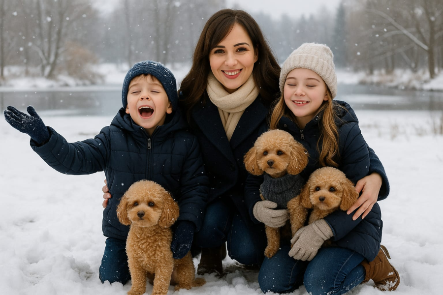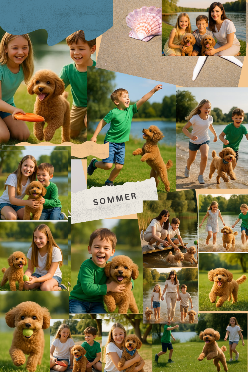 - Geborgenheit: Die Pudel Welpen wachsen mitten in unserem Familienleben auf – mit Kindern, Alltagsgeräuschen, liebevoller Fürsorge und klaren Ruhezeiten.