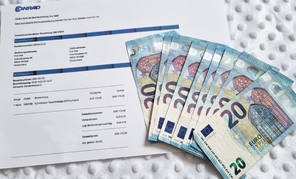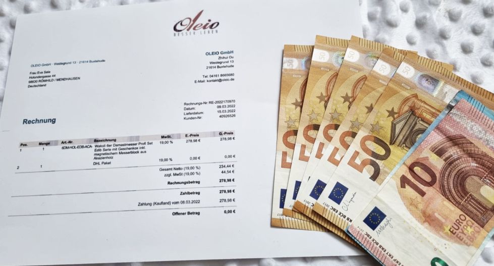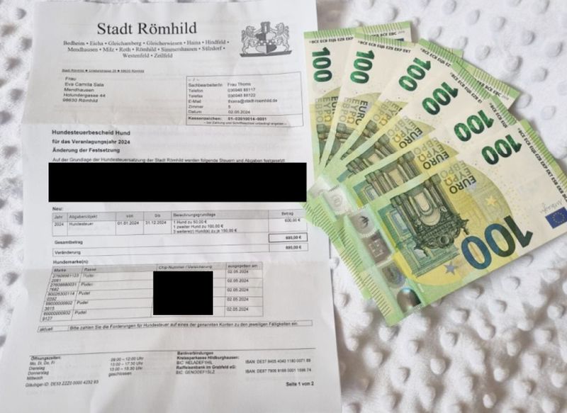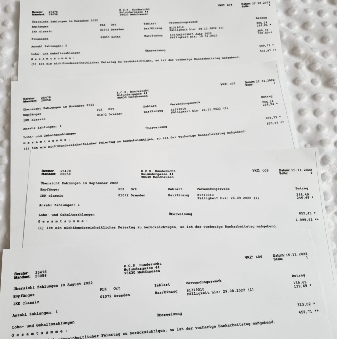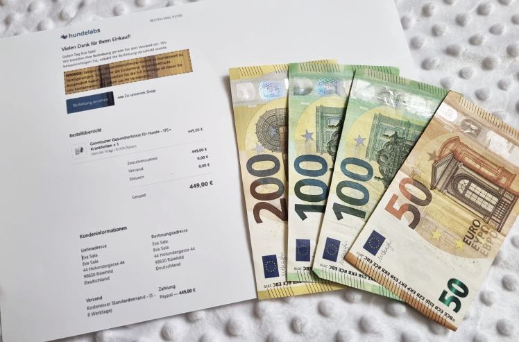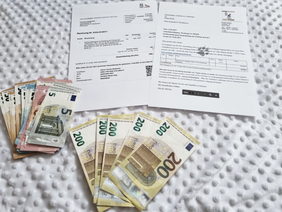 Kommen wir zu den „kleineren“ Rechnungen, die ich als kleine „eBay-Käufe“ bezeichne – gefühlt sind es 1.000 Stück, die aber fast alle zwischen 2 und 100 Euro liegen. Mein Inventar reicht von Chiplesegeräten über hochwertige XXL-Handtücher und schicke Hundeklamotten bis hin zur lebensnotwendigen Wärmelampe. Nicht zu vergessen: die Welpenmappen für Käuferunterlagen, ein HP-Drucker sowie unzählige Druckerpatronen, Kochgefäße und jede Menge kleines und großes Spielzeug. Für ein aufgeräumtes Haus sorgt eine schlichte Kommode für Hundezubehör. Zudem: Scheren, Fütterungsspritzen, Tassen/Gläser für Besucher, Küchenfeinwaage, Wurfkiste, Babyhalsband/Babyleine, die wir den Pudel-Adoptiveltern mitgeben. Außerdem Pudel-Pflegeprodukte, die der Fressnapf um die Ecke nicht führt und die ich benötige. Kartenleser für die Kamera (Spiegelreflex), jede Menge Ladekabel fürs Handy – die unsere Pudelwelpen gern zerkauen –, wiederaufladbare LED-Lichter für Mützen, ein gebogenes Scherenset zum Frisieren, eine Überwachungskamera, Hintergründe für die Homefotografie, Paracord (lange Schnur zur Erziehung), auskochbare Inkontinenzunterlagen, ein Pudelwelpen-Auslauf, eine beheizte Hundehütte für draußen, ein Sofaplüschbezug; gegen die Mücken: das Raid Night & Day Trio Set. Auch ein Vileda-Wischer für den Boden inkl. Eimer darf nicht fehlen, ebenso rutschfeste Stufenmatten für unsere Natursteintreppe.