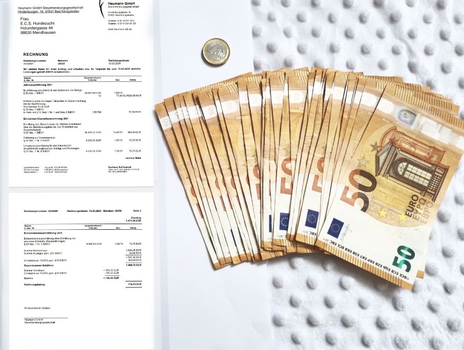 Die Rechnung fällt deshalb so hoch aus, weil neben den wenigen großen Posten hunderte Kleinstbelege für die Pudelzucht und die Aufzucht der Pudelwelpen verbucht werden müssen. Diese Buchhaltung ist extrem zeitaufwendig – und genau das spiegelt sich in der Jahresabrechnung wider.